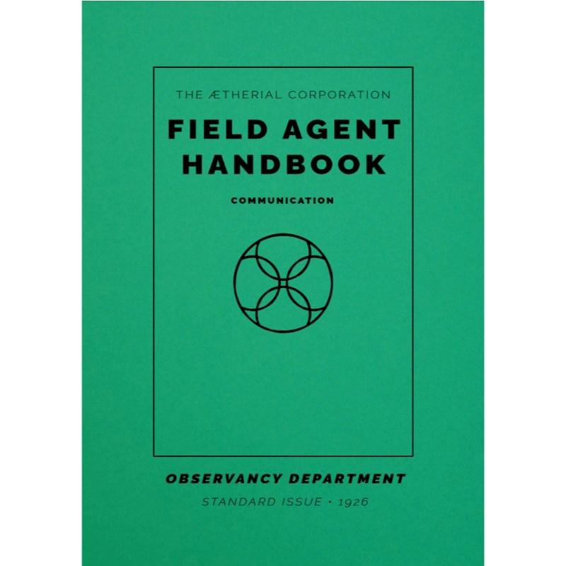 The Field Agent Handbooks are a series of always-on solo RPG/larps to play when out and about. They're written as an in-world artefacts from the 1920s, following the suspicions of the Ætherial Corporation's Observancy Department with instructions to be carried out by their pendulum-dowsing Field Agents.