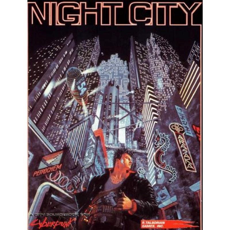 NIGHT CITY. A monster sourcebook containing over 180 jam-packed pages of information on the definitive CYBERPUNK? setting! Hit the CONTROLLED URBAN ZONES with 3D maps and detailed, building by building descriptions to match. Each section also includes comprehensive overviews of FLOOR PLANS, PERSONALITIES, ENCOUNTERS and CONTACTS. The FLASHMAPS Section puts you "on the spot" at the hottest restaurants, clubs, and theatres, as well as SCHEDULES, TRANSIT MAPS and AREA VIEWS. the ARTICLES Section interfaces you with background on SECURITY, PEOPLE OF THE CITY, GANGS & TURFMAPS, plus a U.S. 2020 overview!