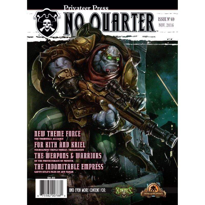 No Quarter #69 has you dead in its sights with an overwhelming salvo of fresh content. In this issue’s pages you’ll find the new Thornfall Alliance theme force for Minions. Our Tournament Triple Threat series continues with an in-depth look at list building for Trollbloods. Master spy Gavyn Kyle submits a report on Khador’s Empress Ayn Vanar. Set sail on holy waters with the third installment of Iron Kingdoms Uncharted, featuring the pirates and privateers of the Protectorate. Want a sneak peak at what you can expect during this year’s SmogCon? We’ve got you covered. All this, plus a new battle report featuring Trollbloods versus Minions, Courage at the Crossroads Season 2 league fiction, a Guts & Gears on Ol’ Rowdy, and so much more!