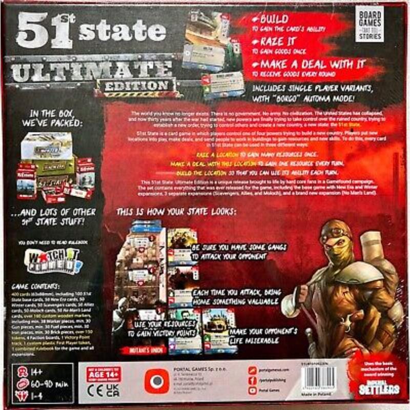 51st State: Ultimate Edition is the all-in-one package for 51st State, including the base game as well as six expansions: New Era, Winter, Scavengers, Allies, Moloch, and No Man's Land.