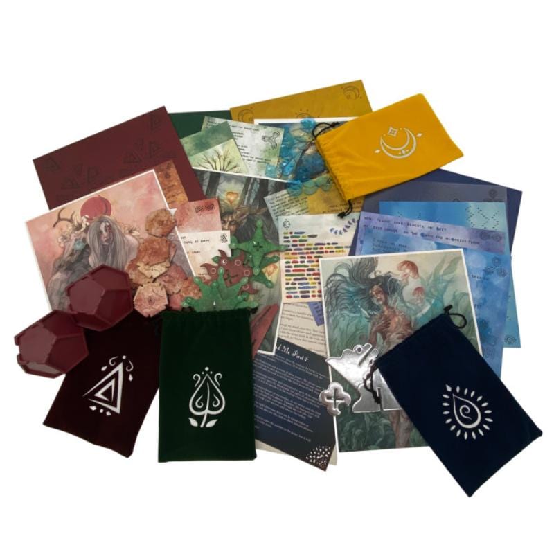 Adrift is played through four parts which can be completed in any order, each representing a different elemental spirit (Sky, Earth, Water, and Forest.) Each section of the game contains three sequential puzzles told through poems, an illustrated poster, and a physical item which needs to be assembled in order to derive a solution phrase.