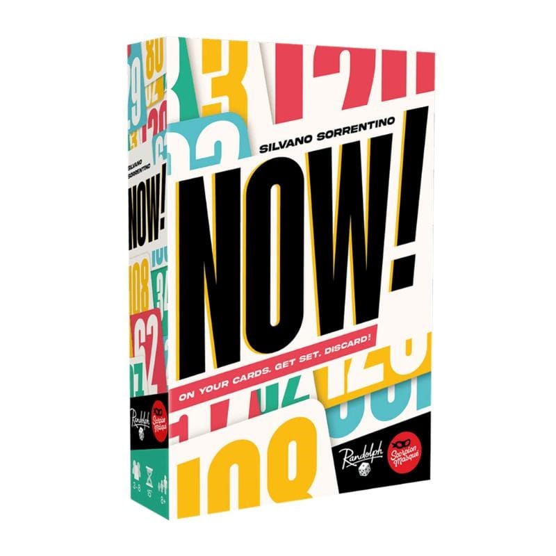 Now! is a real-time competitive card-game. Take your unique coloured deck of cards in your hand, and hold it like you’d hold a cell phone. The face-up card you can see is your Active card. Will it be closer to one of the target cards than those of the other players? Wait and see!