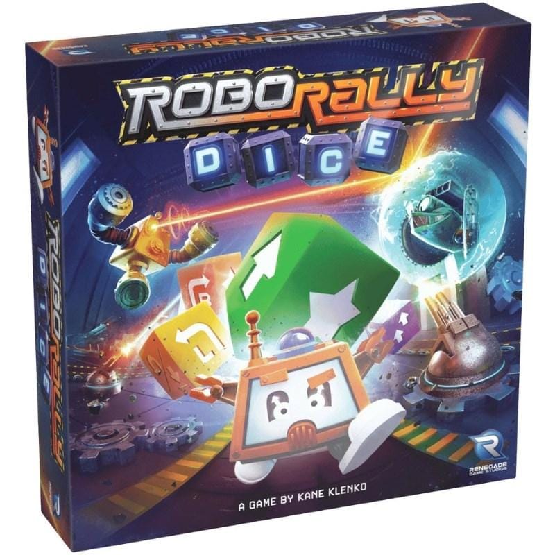 ROBO RALLY DICE is a competitive racing game full of robotic pandemonium! Use real-time dice rolling to program your robot to tag checkpoints, attach powerful upgrades, and turn this dreary old warehouse into a fabulous, fast, and frenzied fun factory!