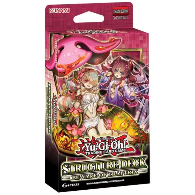 The popular “Traptrix” strategy from Yu-Gi-Oh! MASTER DUEL now has its own Yu-Gi-Oh! TRADING CARD GAME Structure Deck! The “Traptrix” theme is comprised of EARTH Plant and Insect-Type monsters that may appear cute on the surface, but the closer you get the more you’ll find that they’re truly nefarious. This strategy revolves around “Traptrix” monsters that help you Set powerful “Trap Hole” Trap Cards that can drop your opponent’s monsters right out of the Duel! In this Structure Deck you’ll find key “Traptrix” and “Trap Hole” cards from the past alongside powerful brand-new cards!