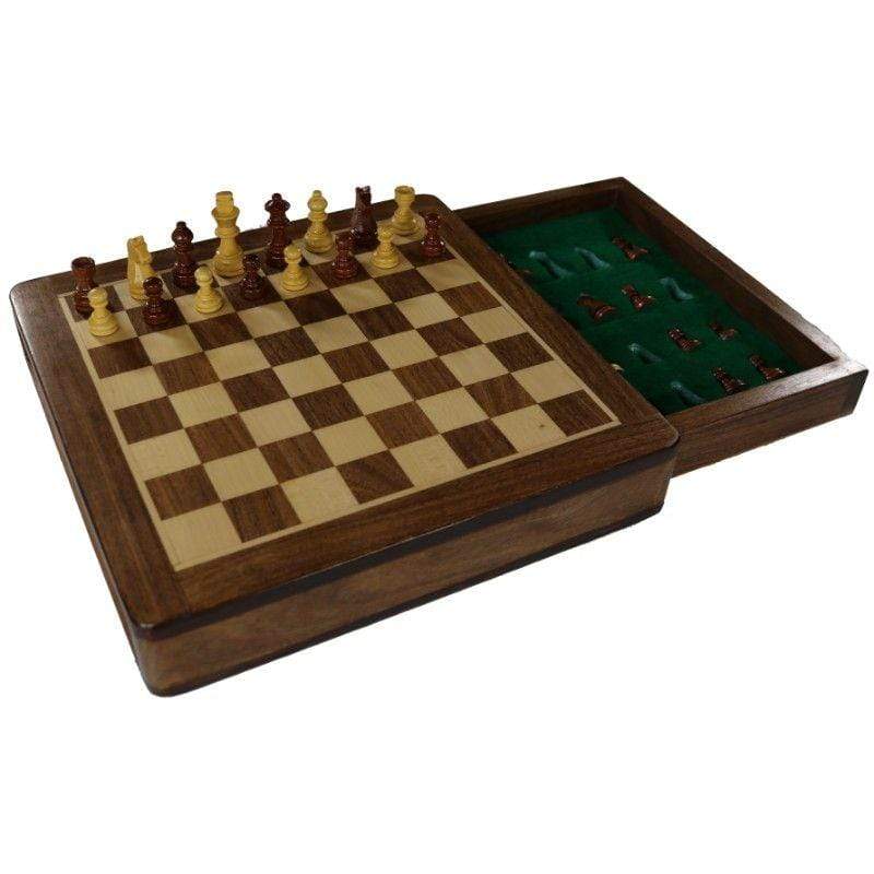 Chess Set - Hawkley Magnetic Drawer Board Acacia 26cm (Royal Oak)
