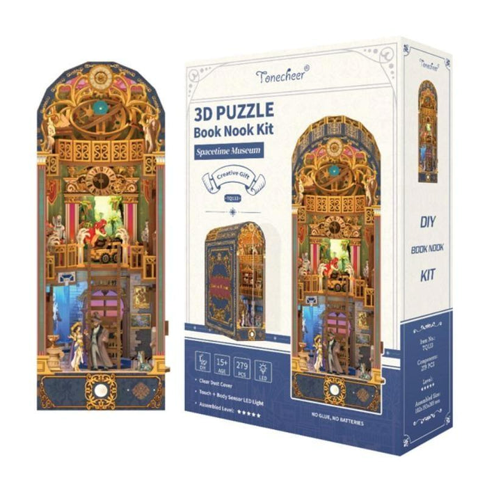 Step into the Spacetime Museum Book Nook Kit, where every door leads to a new world! Featuring a rotatable celestial globe, a twisting staircase, and an exquisite translucent dome, this intricately crafted miniature showcases rare collections, iconic statues, and a gallery of famous paintings with a comical twist. A must-have for lovers of mystery, history, and the wonders of space-time!