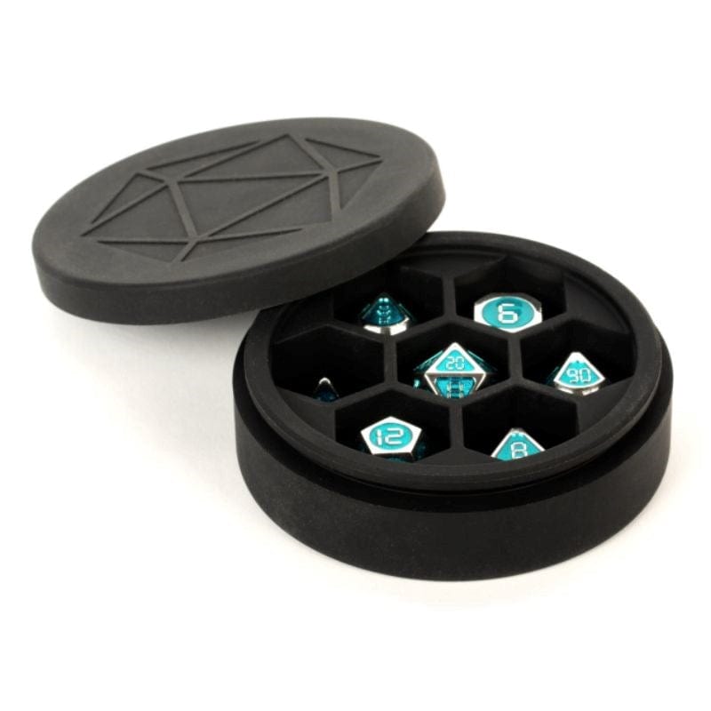 MDG's innovative, patent-pending dice cases are molded from solid silicone. These round cases are sturdy enough to secure your dice, while soft enough to protect them. Each case holds one standard polyhedral set.