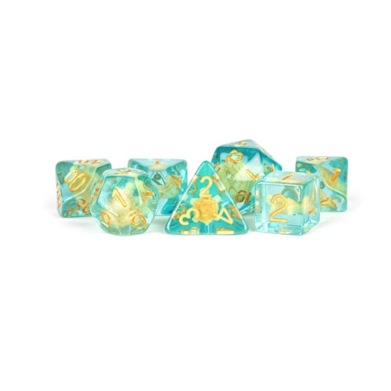 Beautiful and affordable, these are great “Critical Reinforcers” to MDG's metal dice. Each 16mm polyhedral set comes with 7 dice (d4, d6, d8, d10, d10 (00-90), d12, and d20).
