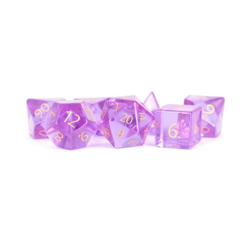 Dice - Zircon Glass Birthstone Polyhedrals - February Amethyst (MDG)