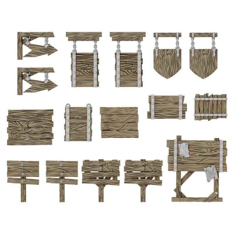 3D printed - Wood Signs Resin wood signs are another member of the family of resin bits created by Green Stuff World, specially designed to enhance your dioramas, terrain builds, and miniature wargaming tables with realistic and immersive narrative details. Produced using high-quality 3D resin printing, these elements offer exceptional detail, perfect for representing signs, warnings, or weathered wooden boards in war-torn or fantasy-themed settings.