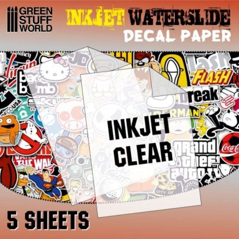 Print your own waterslide decals with this set of 5 sheets of printable decal paper. Decals are to be applied with water, no solvent required. You can also use some GSW Decal Softener and GSW Decal Fixer solutions to improve and protect the finish on uneven or rough surfaces.