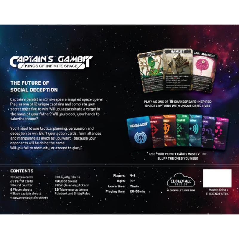 This high-tension space opera combines hidden roles with bluffable actions, allowing you to build multiple layers of deceit or honesty. But unlike social deduction games that only reward lies, this game allows you to win through a range of skills like strategic planning, honest negotiations or opportunistic gambits. Captain's Gambit guarantees that your table will recount the struggles and triumphs of each game long after it's put away.