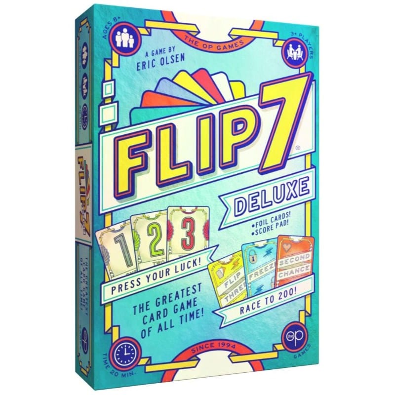 Flip over cards one by one without flipping the same number twice.Sound easy? Think again! This isn't just any deck of cards… In Flip 7™ Deluxe there's only one 1 card, two 2's, three 3’s, etc. plus a bunch of special cards that can score you extra points, give you a second chance, or freeze you or your opponents in your tracks. Are you the type of player to play it safe and bank points before you bust, or are you going to risk it all and go for the bonus points by flipping over seven in a row? Press your luck meets strategy in this addictive card game that's sure to be the greatest card game you’ve ever played!