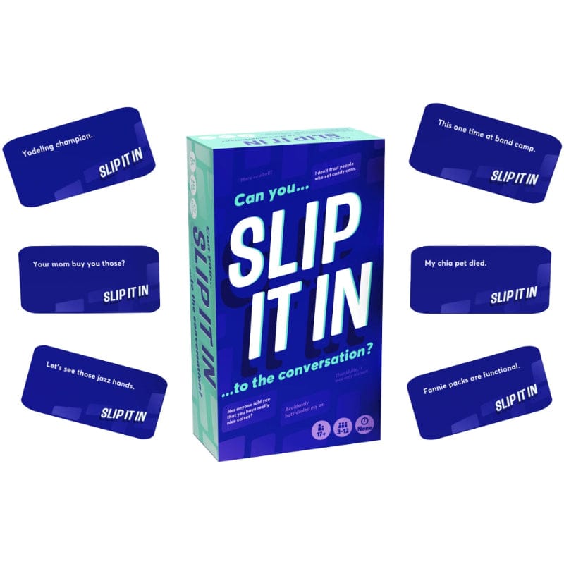 Can you sneak 'slippery when wet' into a weather discussion or work 'deep fried Twinkie' into a restaurant order without getting busted? Slip It In and find out! This game is perfect for nights out with friends, dinner parties, and game nights.