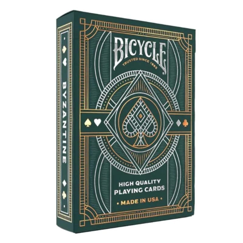 Timeless, elegant line work fills every inch of Bicycle Byzantine Playing Cards.Bring a heightened level of sophistication to your next game night, with striking gold and silver foil highlights on the tuck, and fully custom court cards and card back designs.