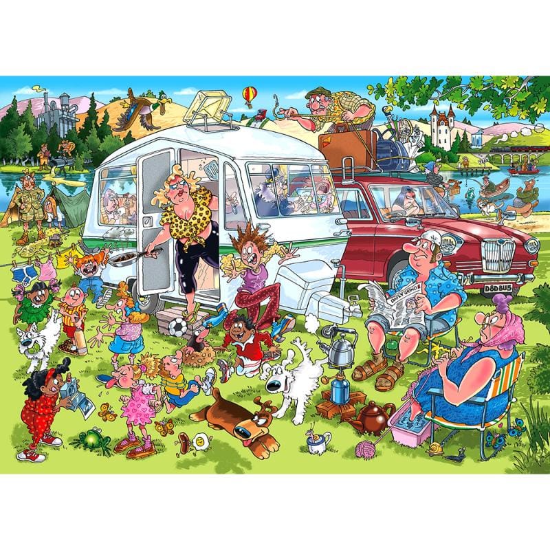 Memories of cramped caravans, collapsible furniture and grumpy Grannies sipping tea while it rains come flooding back when thinking of camping trips. Outdoorsy holidays meant the smell of frazzled fry-ups wafting across the campsite, the sounds of children running wild, yappy dogs and sulky teenagers. But what does todays campsite look like? Can families really escape from their creature comforts, screens and routines? This is the scene you have to puzzle!