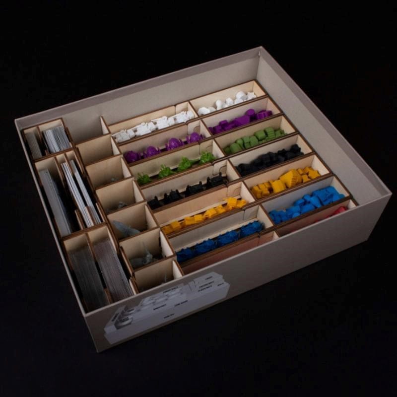 An epic game requires great preparation. Make sure your game box is ready with our Scythe Silo organizer for Scythe by Stonemaier Games. This organizer will fit inside the original Scythe box or the Legendary Box and holds the base game and Invaders from Afar expansion.